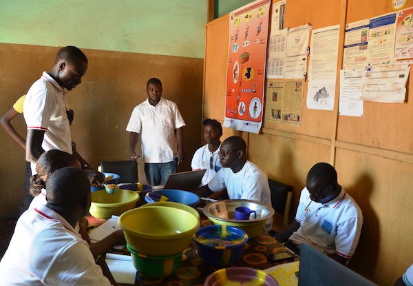 Dans le souci de permettre aux ménages non bénéficiaires à tout moment et aux bénéficiaires après la fin du projet d’avoir une alternative pour alimenter leur enfant avec un aliment adapté, le GRET dispose d’une vingtaine de formules qu’il a transférées à l’équipe terrain de l’OCADES. Ces recettes seront ensuite transférées aux communautés et sont préparées à partir de produits locaux accessibles. La formation s’est déroulée en 3 étapes : Théorie, pratique et exercices de transfert en conditions réelles sur le terrain.