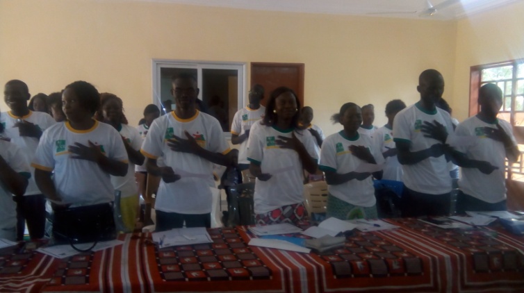 L’hymne National le Ditanyé a été entonné en chœur suivi du mot de bienvenue prononcé par monsieur Alphonse GANSONRE, Secrétaire Exécutif Adjoint de l’OCADES Caritas à Koudougou, représentant l’abbé Alain Michel GUISSOU, Secrétaire Exécutif Diocésain.