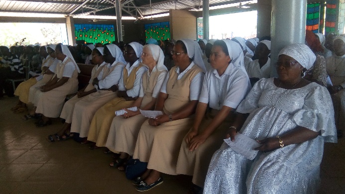 Monseigneur Justin KIENTEGA a, dans son mot, rappelé qu’il a eu à collaborer avec la sœur Lala quand il était encore à Koudougou et que leur contact était maintenu. Il est venu traduire sa solidarité au diocèse de Koudougou et rappelé les bons soins de sœurs Lala en particulier sa recette anti ulcère d’estomac.