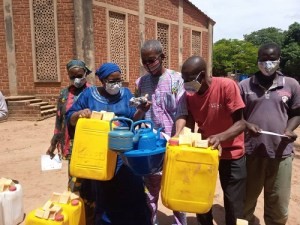 Pour permettre à la population de bien respecter les mesures barrières, l’équipe de l’OCADES a remis du matériel d’hygiène et de protection à 540 personnes vulnérables de Orodara. Chaque personne vulnérable recensée a reçu deux bidons de 20 litres, 8 boules de savons, 7 bavettes, un lave-mains et deux bouillards.