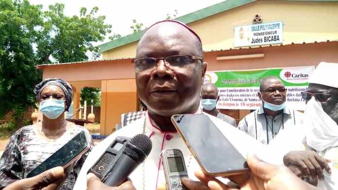 Le Secrétaire exécutif de l’OCADES Dédougou, l’Abbé André TOE a rappelé que le nombre de déplacés internes au sein des paroisses de Nyassan et de Tougan est de 8000 personnes. Quant à Monseigneur Prosper Bonaventure KI évêque du Diocèse de Dédougou, il a précisé que la mission de l’institution qu’est l’OCADES, c’est d’être au service des plus pauvres et les plus vulnérables. Par ce projet dit-il « l’Eglise famille de Dieu à travers l’OCADES Caritas Burkina, a mobilisé la somme de près de 400millions de FCFA afin de venir en aide à des populations qui vivent dans des situations précaires dues à l’insécurité alimentaire que traverse notre pays, mais dues aussi à des phénomènes de marginalisation liées à un handicap quelconque ».